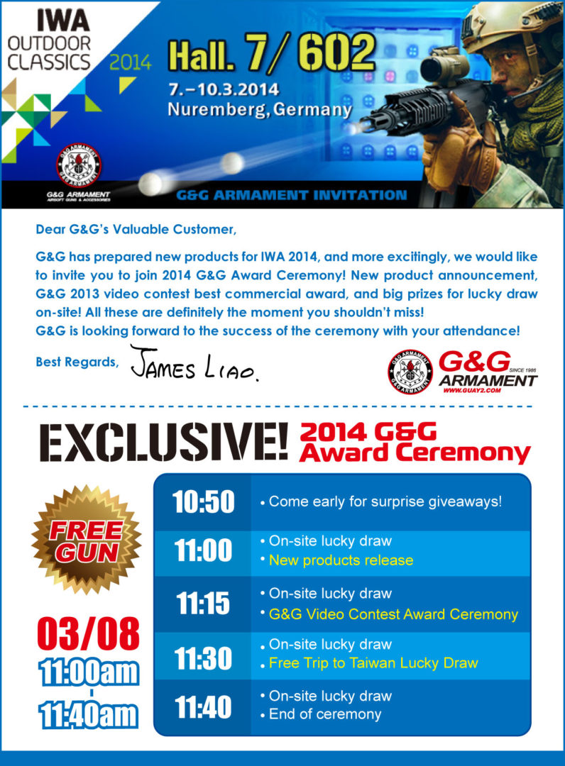 IWA 2014 is coming, and G&G again prepare a grand ceremony at our booth!