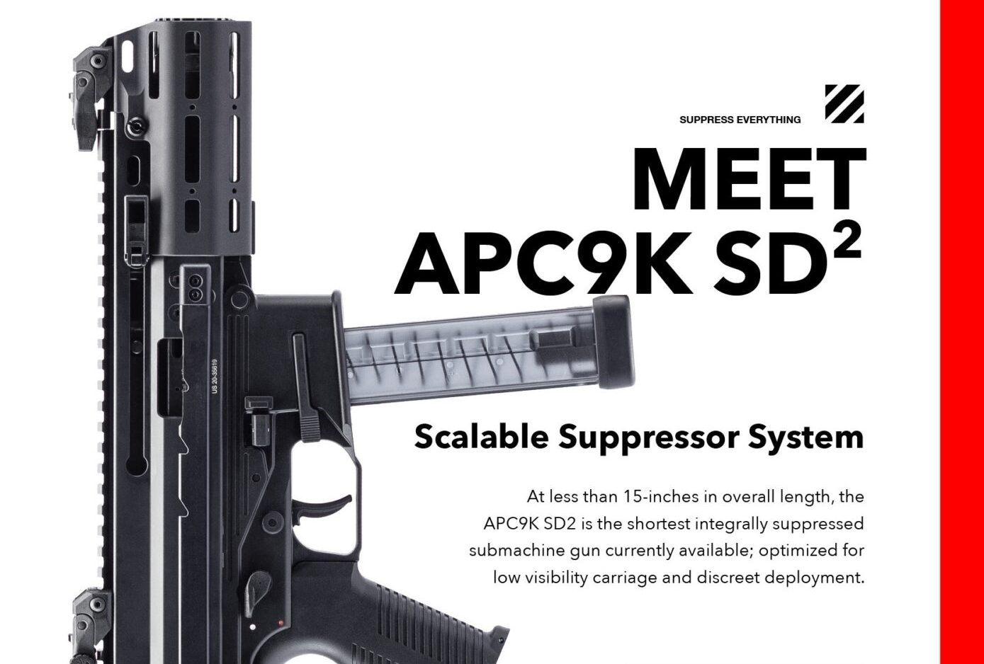 At less than 15 inches in overall length, the APC9K SD2 is the shortest integrally suppressed submachine gun available on the market today (a semi-automatic version is also available to both consumer and professional markets). With a 3-inch ported barrel and an over-the-barrel suppressor design that is fully contained within the short, M-Lok-compatible SD handguard, this weapon is optimized for low-visibility carriage and discreet deployment, delivering exceptional accuracy, controllability and ergonomics. Should the user require the utmost in suppression in lieu of compactness, a second-stage suppressor can be threaded onto the first, providing APC9 SD Compact-level (mid-length) decibel reduction.