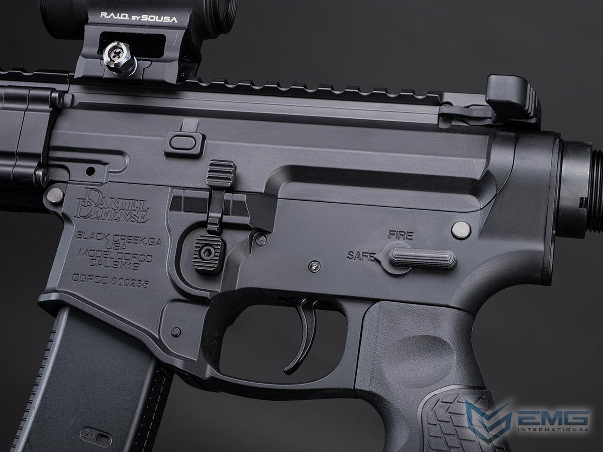 Fully licensed Daniel Defense PCC 916 replica built for realism and performance. Featuring authentic deep engraved markings, a durable aluminum alloy body, ambidextrous controls, and a full-length Picatinny rail. This EMG-built platform delivers true-to-spec quality from receiver to handguard.
