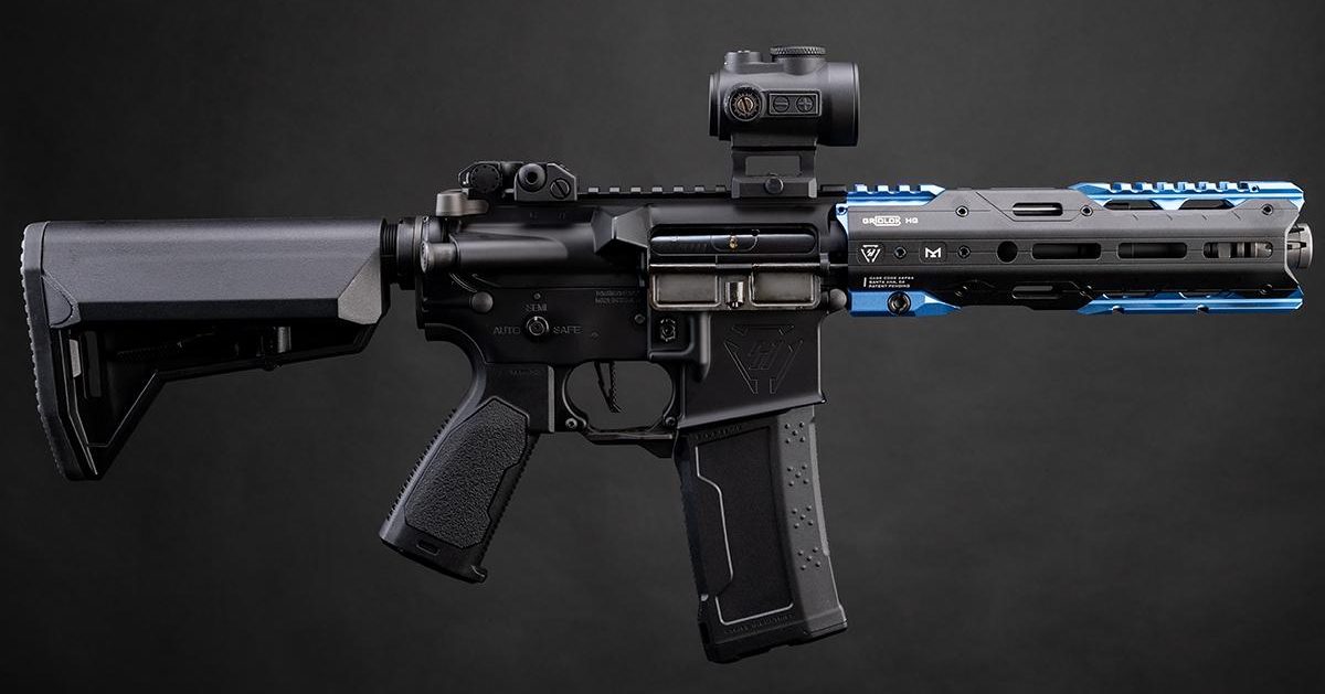 Built with premium Strike Industries parts and details throughout this rifle features a full aluminum receiver, GRIDLOK M-LOK handguard, and licensed controls for an authentic look and feel.