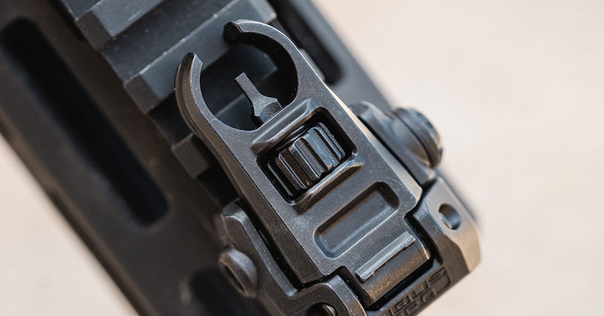 The Hooded Pro Sight — like our other MBUS Pro Sights — is made from steel and includes a corrosion-resistant QPQ finish. It has toolless elevation adjustment with standard AR sight height when deployed, and detent positions keep your sight reliably in position whether it’s stowed or deployed.