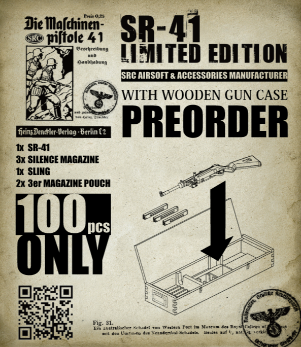 SRC announced that the MP-41 is now available for pre-order at their website. Limeted 100 pieces are made! The gun it self comes in a wooden gun case with 3 magazines, 1 gun sling and a 2x 3 magazine pouch. Their MP-40 magazines are compatible with this gun as well.