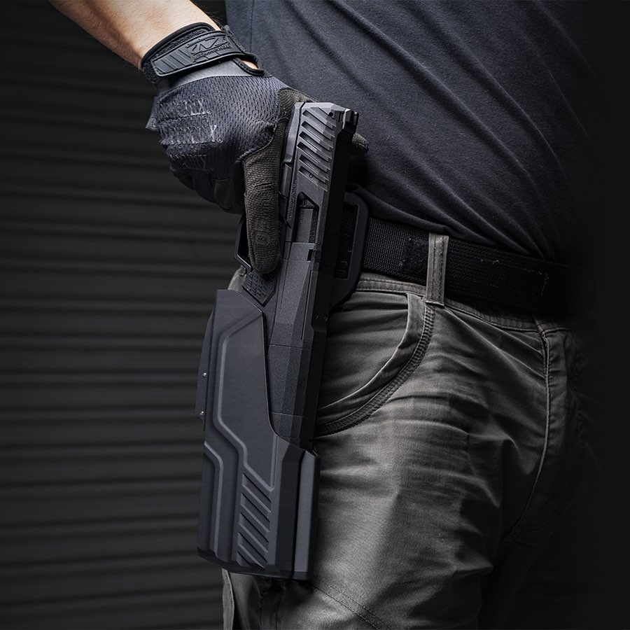 The Maxim 9 holster features adjustable retention and is compatible with the Safariland ALS mounting system. You can use their adjustable belt loop mount or your own ALS set up, if you have one already.